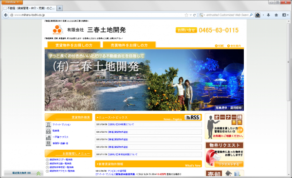 今回、2013年4月1日にリニューアルした「三春土地開発」は、足柄下郡湯河原町を中心に目的にあった賃貸・売買物件が探せるWebサイトです。