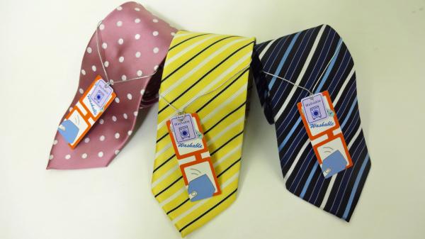 視力が悪くなくてもメガネをかける機会も多くなってきた日常生活。いつもメガネケースにクロスをいれて持ち歩くのは面倒!そんな仕事中にでもさっとメガネが拭けてしまう、便利な機能付きネクタイです。スマートフォンを拭くのにも適しています!ネクタイ裏生地に眼鏡拭きを縫い合わせてある仕様で、ネクタイ裏側の剣先(先端)でメガネが拭くことが可能。デザインは全50色柄。987円(税込)。見た目も、締め心地にもこだわった品質・デザインで、全店舗で販売致します。(生産計画/15,000本)