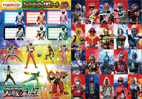 ナムコ限定「スーパーヒーロー大戦Zシール」(A5サイズ)をプレゼント!種類は全部で3種類。