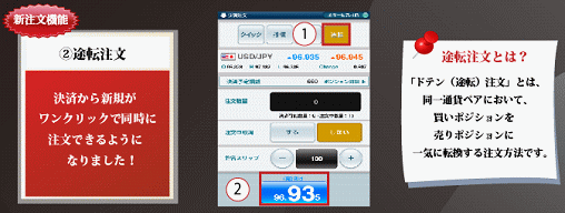 (2)【新注文機能】ワンクリック途転(ドテン)注文