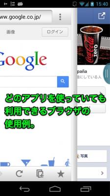 他のアプリの動作を止めることなく、そのアプリの上にオーバーレイして使用できる技術です。