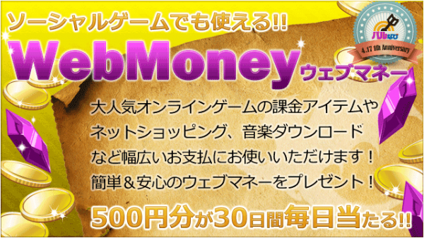 ・Webmoney500円分を30名様