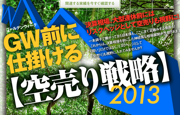 ・商品名:厳選5銘柄付き市況分析レポート『GW前に仕掛ける空売り戦略2013』