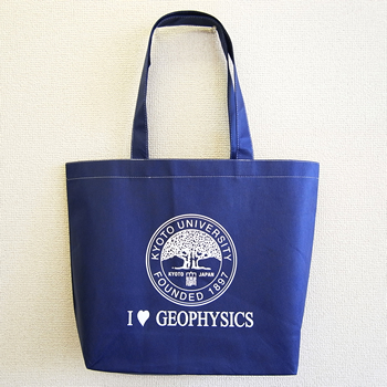 地質構造や鉱床の存在などを調査している京都大学大学院の研究室が、今年の5月に開催される日本地球惑星科学連合大会(幕張メッセ)と、同じく9月に開催される米国物理探査学会(テキサス州)へのブース出展用として制作された記念のエコバッグです。