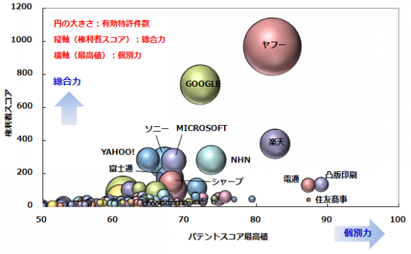 1993年から2013年2月末までに日本の特許庁で公開された関連特許5,458件を対象に、個別特許スコアリング指標「パテントスコア」による評価を実施し、特許の質と量から総合的に見た「特許総合力ランキング」を集計しました。
