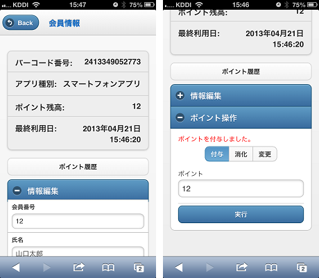 ・遠隔でのポイント付与と消化(管理画面からポイント付与・消化を実行できます。)