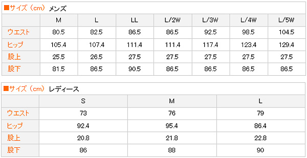 ●サイズ:M、L、LL、L/2W、L/3W、L/4W 、L/5W