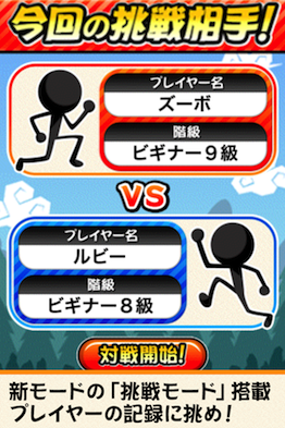 「挑戦モード」では挑戦者が現れるので、挑戦者に打ち勝ち自分の称号をどんどん上げていこう!