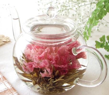 セットの工芸茶は母の日らしい「カーネーション」を始め、