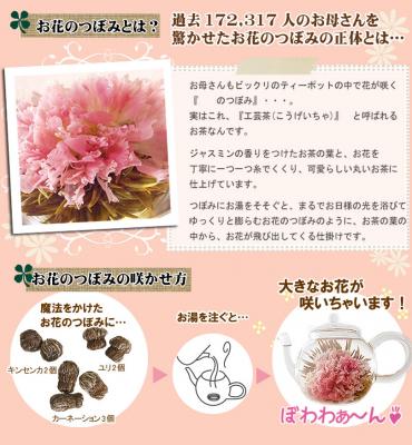 商品内容 :工芸茶(カーネーション3玉/ユリ3玉/キンセンカ3玉)、