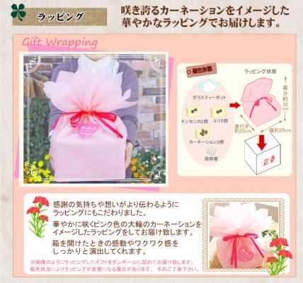 ラッピングは、ピンク色のカーネーションをイメージした