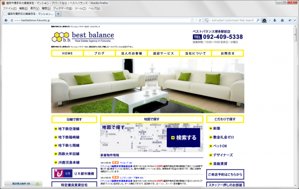 「ベストバランス博多駅前店」は宣伝と集客を目的として、インターネット不動産の開設にASPサービス「仲介名人」を採用頂きました。