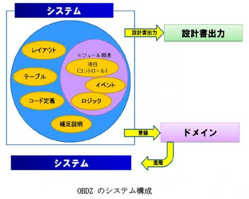 ならば「設計をシステム化したらコードまで生成できる」をあきらめ、「設計をシステム化して設計書を生成する」というように発想転換したらどうだろうと考えました。通常、プログラミング作業より設計作業の方に工数がかかるので、設計作業を効率化するだけでも大幅にコスト削減や設計品質向上ができます。そんな新発想で登場したのが設計書ジェネレータ「OBDZ」なのです。