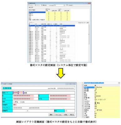 例えば、記述ルールです。画面レイアウト定義上に入力データの記述ルールを決める手法があり、《数値のみ、6桁でゼロサプレスあり》なら「ZZZZZ6」と表示するなどいったルールを定めることができます。これにより、画面レイアウト上で視覚的にデータの形式を確認できます。OBDZでは、この書式ルールをマスタで持っており、自動で表示する機能があります。