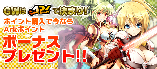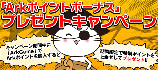 キャンペーン期間中に「ArkGame」でArkポイントを購入すると期間限定で特別ポイントを上乗せしてプレゼントします。