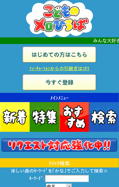「こどものメロひろば」は、2009年8月にau公式コンテンツとしてリリースされた、親子で楽しめる子供向けの楽曲を中心とした高音質、高品質の着信メロディを提供するサイトです。