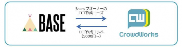 この度、BASEとクラウドワークスとは、クラウドワークスの「コンペ形式」を活用し、BASEに登録しているショップ向けにロゴを5,000円の低予算で簡単に依頼できるサービスをBASE Apps内にショップロゴ作成サービス(http://apps.thebase.in/detail/17)として開始致しました。ショップのオーナーは作成したいロゴのイメージを登録するだけで、クラウドワークスに登録される27,000名を超えるメンバー(受注者)に作成を依頼することが可能になります。また、サービス開始キャンペーンとして、抽選で100社様に無料作成プランを提供させて頂きます。(注1)