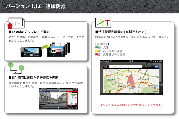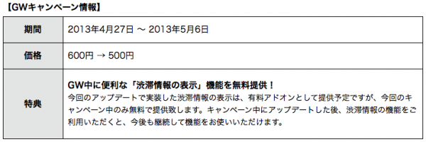 *今回のアップデートで渋滞情報表示機能を今回の期間中、無料提供いたします。