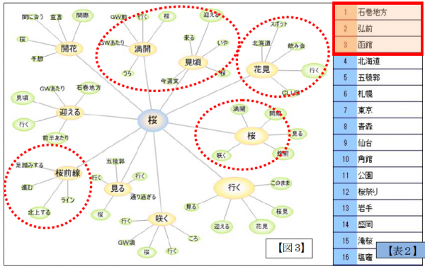 最後に、北日本地区の「桜」に関する投稿の詳細を分析した結果【図3】【表2】のようになりました。