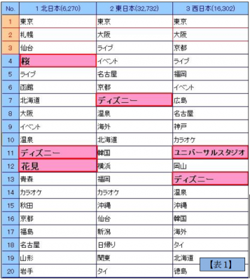 1.基本分析:GW、全国人気の行き先は「ディズニー」、北日本は「桜・花見」も