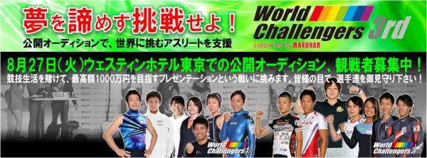 「マルハンWorld Challengers」とは、全日本選手権・地方選手権出場レベルのアスリートを対象に、公開オーディションで協賛対象者を選抜する、日本唯一のアスリート支援プロジェクトです。将来性がありながらも競技資金不足で世界に挑戦できないアスリート等、特にマイナー競技・アマチュア選手の資金難・PR不足をサポートするプログラムで、2011年に第1回をスタートさせました。