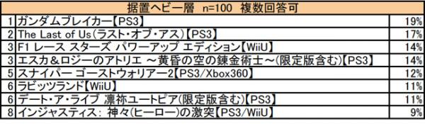 ユーザーがオススメする6月発売の据置ゲームトップ3は、1位「F1 レース スターズ パワーアップ エディション」、「ガンダムブレイカー」の2作品が同率で、3位「The Last of Us」となりました。