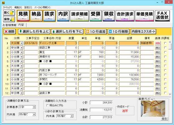 「工事見積支太郎」は、建設業やリフォーム業向けの見積書や請求書、内訳書、領収書などの