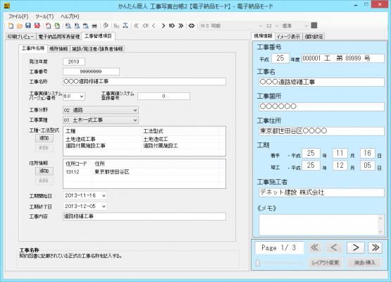 電子納品モードでは電子納品が可能な工事写真台帳を国土交通省の基準に対応した納品要領、