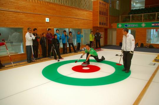 札幌市内往復の送迎付きで移動もラクラク。2012年にオープンした、通年型カーリング専用施設「どうぎんカーリングスタジアム」までご案内します。道具もすべて揃っていますので、手ぶらでご参加いただけます。