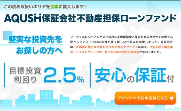 本日2013年5月1日より「AQUSH保証会社不動産担保ローンファンド」の募集を開始致します。