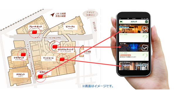 O2Oスタンプラリーは、iPhone(一部機種を除く)をお持ちの方であれば、どなたでも無料で参加できます。タグキャストの屋内位置情報の技術により、特定の場所でアプリを利用するだけで手軽にスタンプを集めることができます。参加にあたって特別な機器の接続や面倒な設定、機器にかざす必要もありません。アプリ内で出されるヒントにもとづいて場所を探して、スタンプを全部集めると、素敵な景品と無料で交換できます。