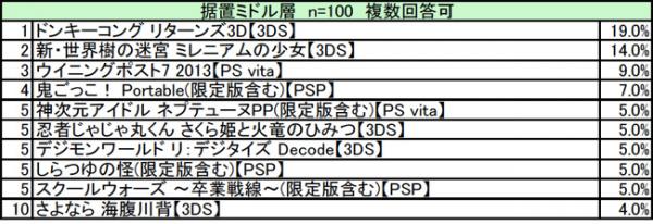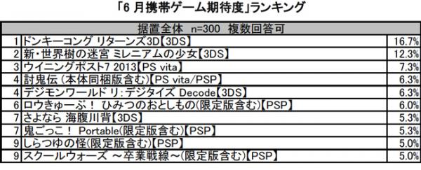 ユーザーが期待する6月発売の新作ソフトトップ3は、1位「ドンキーコング リターンズ3D」、2位「新・世界樹の迷宮 ミレニアムの少女」、3位「ウイニングポスト7 2013」となりました。