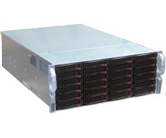 36台のホットスワップ対応3.5インチ・リムーバブルベイをサポートしたハードディスク・バックプレーン上に6Gbps SASエキスパンダーが装備されており、4チャンネルのSAS/SATA RAIDコントローラから36台のディスクが管理可能で、外部JBODユニットの増設によるデータ領域の拡張も容易に行えます。OS起動ディスク用に2台の2.5インチ固定ドライブ・ベイを装備しています。