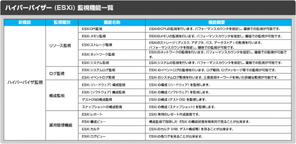 ■ハイパーバイザー(ESXi) 監視機能一覧