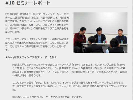 『Sexyなリスティング広告プレイヤーになるために…』テーマにご講演いただきました。