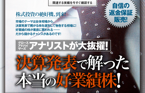 ・商品名:厳選5銘柄付き市況分析レポート「アナリストが大抜擢! 決算発表で解った本当の好業績株!」