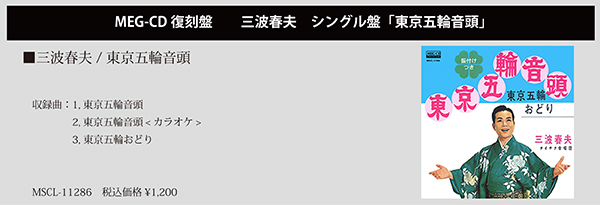 収録曲:1,東京五輪音頭 2,東京五輪音頭<カラオケ> 3, 東京五輪おどり