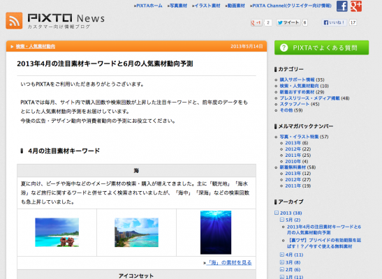 2013年4月の注目素材キーワードと6月の人気素材動向予測