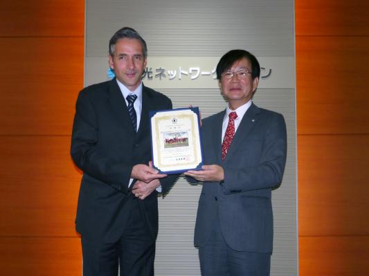 2013 年4 月26 日に、WFP 国連世界食糧計画の日本事務所代表であるスティーブン・アンダーソン氏が当社へ来社し、弊社常務取締役の田上節朗に感謝状を手渡されました。