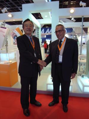 その中で4月より中東のAQSkinSolutions販売を手がけることになった中東大手の医療系会社、Kalium社のカーター代表とAQスキンソリューションズジャパン社の駒崎代表が対談し、意見交換を行った。
