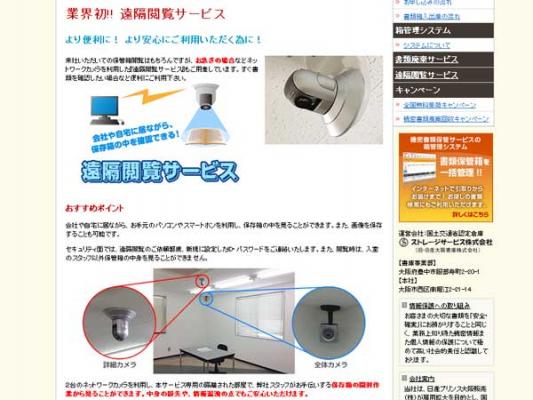 今回の『遠隔閲覧サービス』は、従来からのご来社にての閲覧サービスに加え、会社やご自宅に居ながら、お手元のパソコンやスマートホンを利用し、倉庫側の2台のネットワークカメラからライブで保管箱の中を見たり画像を保存することができるサービスです。遠隔閲覧の際には当社スタッフがお客様に代わり保管箱の開閉、ファイルの取出し、書類をめくるなどお手伝いいたします。緊急時や箱の中身を確認したい場合など便利に利用できるサービスです。2台のネットワークカメラを同時に見ることができますので、1台のカメラで専用閲覧室全体を映し不審な動作が無いかご確認いただきながら、もう1台のカメラで箱の中身や書類の詳細をご確認いただけます。セキュリティ面では、遠隔閲覧ご依頼の都度、新規にID・パスワードを作成しますので安心です。また、遠隔閲覧時は入室のスタッフ以外、保管箱の中身を見ることが出来ません。よくあるFAXや電子化された書類をメールするサービスなどでは、倉庫側に機密データが残ることや、誤送信などの危険がありますが、この『遠隔閲覧サービス』では、そのような情報漏洩に関する危険がありません。