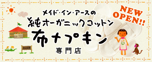 2013年5月10日にグランドオープンした直営オンラインショップ「メイド・イン・アースの布ナプキン専門店」では、布ナプキンを知らない方、初めて使おうとしている方、初心者、ベテランユーザーまでご満足いただけるよう、メイド・イン・アースの布ナプキンと使い捨てナプキン、一般の布ナプキンとの違いや、使い方・洗い方・たたみ方・持ち運び方まで徹底解説。女性ホルモンとカラダと心の関係、布ナプキンに関するありとあらゆる質問を集めたQ&A集まで、充実の読み物を展開しております。