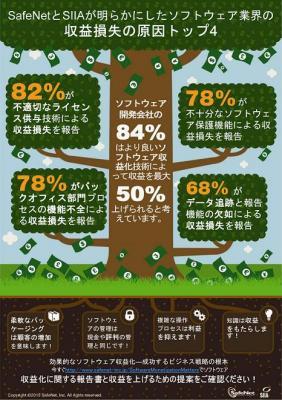 ソフトウェアマネタイゼーション(収益化)のグローバルリーダーであるセーフネットと、SIIA(Software & Information Industry Association)は620社を超えるソフトウェア開発会社と194人のエンタープライズソフトウェアのエンドユーザーを対象に共同実施した、ソフトウェア収益化に関する調査結果(日本語版)を発表しました。今回の調査では、業務を中断することなく重要な知的財産(IP)の侵害を防止する、という課題に開発会社が頭を悩ませている現状が浮き彫りになりました。ビジネスを支える柱となるライセンスモデルとセキュリティ保護を適切な方法で導入していないソフトウェア開発会社は、売上減を経験し、さらに利益低下、ブランドリスク、企業イメージの悪化を招いています。