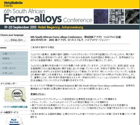 会議:「6th South African Ferro-alloys Conference - 第6回南アフリカフェロアロイ会議」