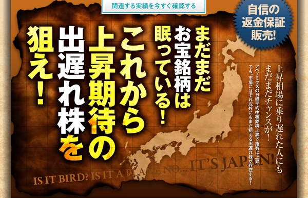 ・商品名:厳選5銘柄付き市況分析レポート「まだまだお宝銘柄は眠っている! これから上昇期待の出遅れ株を狙え!」