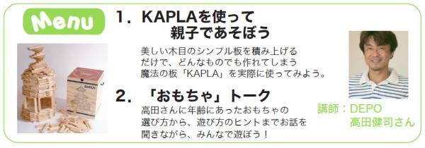 「暮らし塾」は、生活の様々なシーンでご利用いただいている暮らしのプロ「クラッシー」が毎月開催する講座です。ご家族やお友達と気軽に楽しめる講座を開催しており、5月はデポーの高田健司さんをお迎えして、KAPLAを使って親子で遊びます。
