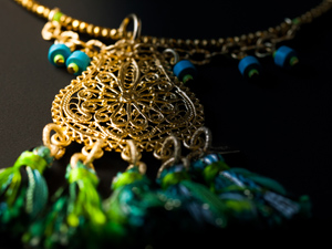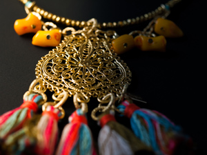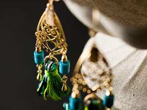 「オリエンタルシリーズ」は、普段は木材をメインにした「fugue(フーガ)」のアクセサリーとしては一風変わって、古代オリエントをイメージしたネックレスとピアスのシリーズです。
