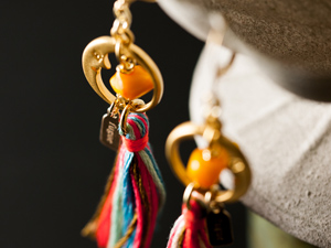 「オリエンタルシリーズ」は、普段は木材をメインにした「fugue(フーガ)」のアクセサリーとしては一風変わって、古代オリエントをイメージしたネックレスとピアスのシリーズです。