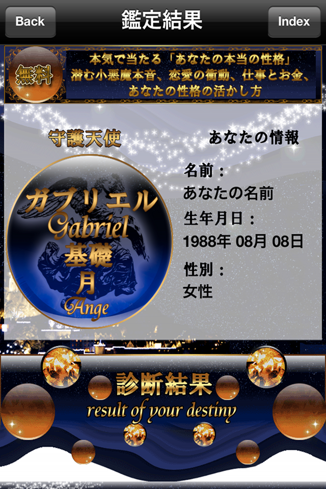 本コンテンツはあなたの守護天使を明らかにし、その天使と占星術を用いてあなたの運命を解き明かす占いアプリです。