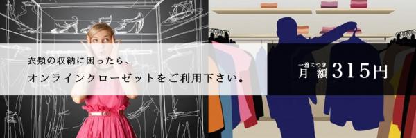 衣類・バック・靴・帽子などを1点、月額315円で、品質を保ち、衣類品専用保管ルームにて保管致します。